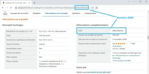 Pour un produit listé sur Amazon, vous pouvez trouver son ASIN sur la page de détail du produit, dans la section des détails ou via l’URL de la page du produit.