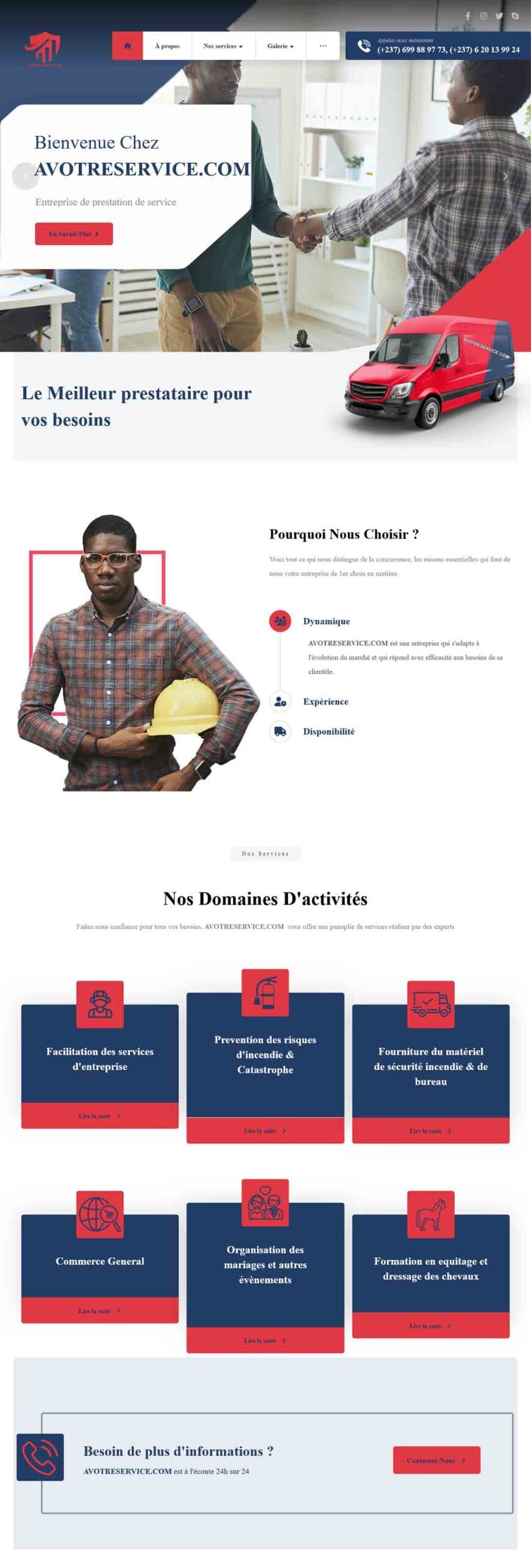 AVOTRESERVICE.COM est une entreprise Camerounaise de prestation de service dont la vocation est axée sur la résolution des problèmes liés aux incendies , distribution des produits à caractère commercial, organisation des évènements et offre diverses formations en sécurité environnemental et et dressage des chevaux..