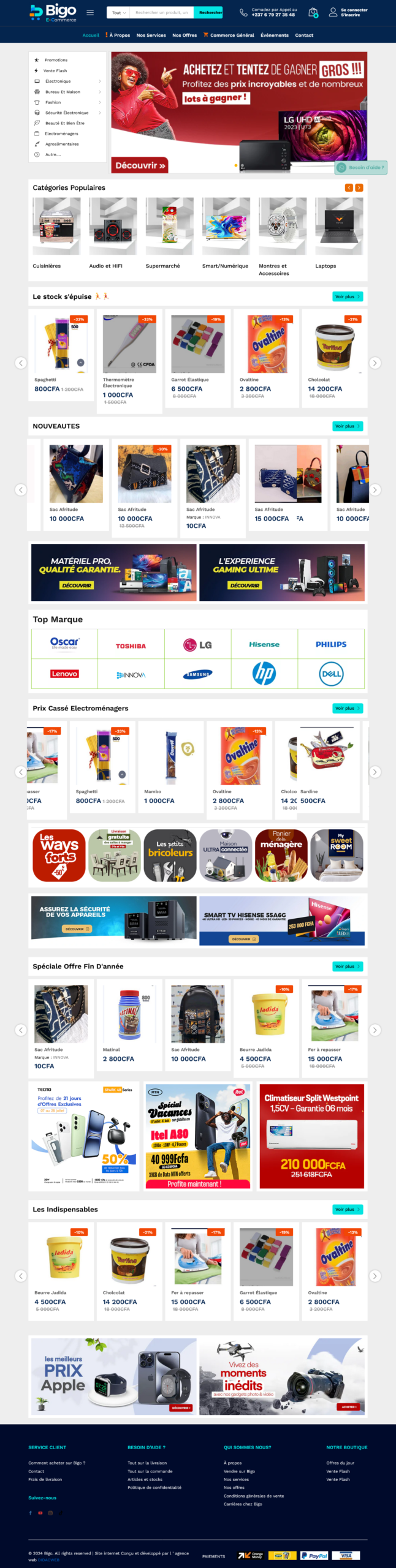 Avant la collaboration avec Didacweb, BBH & CO SARL souhaitait structurer et professionnaliser sa présence digitale autour de la marque Bigo. L’objectif était de disposer d’une plateforme e-commerce unique permettant :