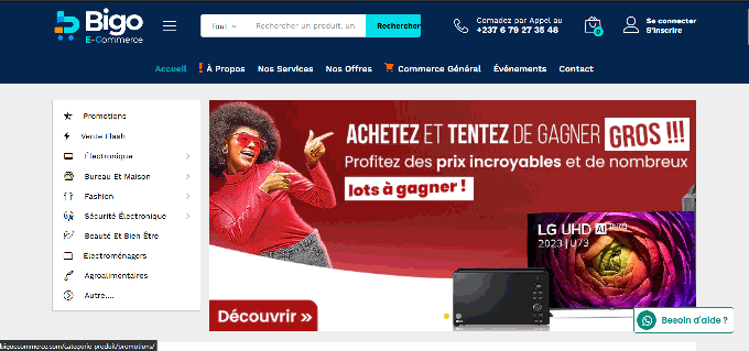 de vendre en ligne une large gamme de produits (électronique, électroménager, maison & bureau, mode, sécurité électronique, agroalimentaire, etc.) bigoecommerce.com+1