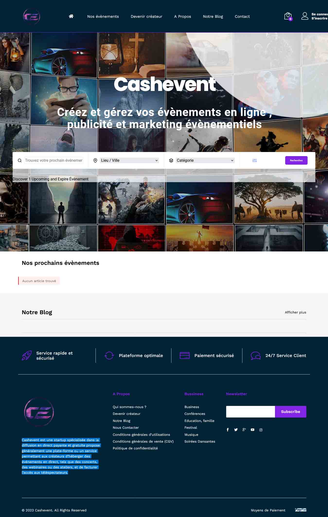 Avant notre collaboration, Cashevent cherchait à renforcer sa présence en ligne et à mieux refléter son image de marque innovante et s’imposer dans le secteur de l’événementiel. L’objectif pour Didacweb était de créer un site web captivant pour mettre en avant leurs services. Notre mission a été de concevoir un site qui non seulement met en valeur leurs services, mais aussi qui communique efficacement leur engagement envers leur clientèle.