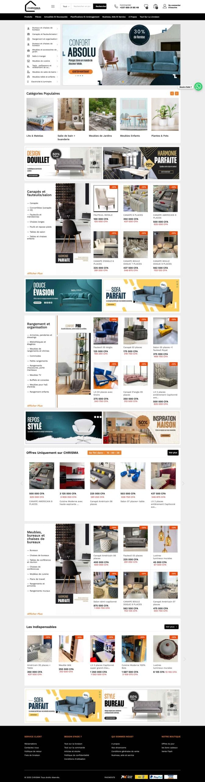 La création de la boutique par Didacweb a permis à Chrisma de solidifier sa position de leader dans le secteur de l’ameublement intérieur et extérieur, en offrant à ses clients une plateforme fiable et engageante pour l’achat des produits meublée de qualité, contribuant ainsi à une économie plus verte