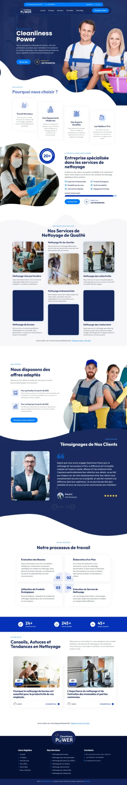 Avant notre collaboration, Cleanliness-Power cherchait à renforcer sa présence en ligne et à mieux refléter son image de marque innovante et s’imposer dans le secteur de services divers . L’objectif pour Didacweb était de créer un site web captivant pour mettre en avant leurs services. Notre mission a été de concevoir un site qui non seulement met en valeur leurs services, mais aussi qui communique efficacement leur engagement envers leur clientèle.