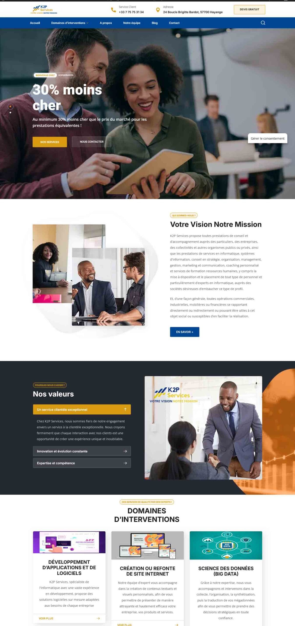 Avant notre collaboration, K2P Services cherchait à renforcer sa présence en ligne et à mieux refléter son image de marque innovante et s’imposer dans le secteur du management de projets. L’objectif pour Didacweb était de créer un site web captivant pour mettre en avant leurs services et produits. Notre mission a été de concevoir un site qui non seulement met en valeur leurs services, mais aussi qui communique efficacement leur engagement envers leur clientèle.