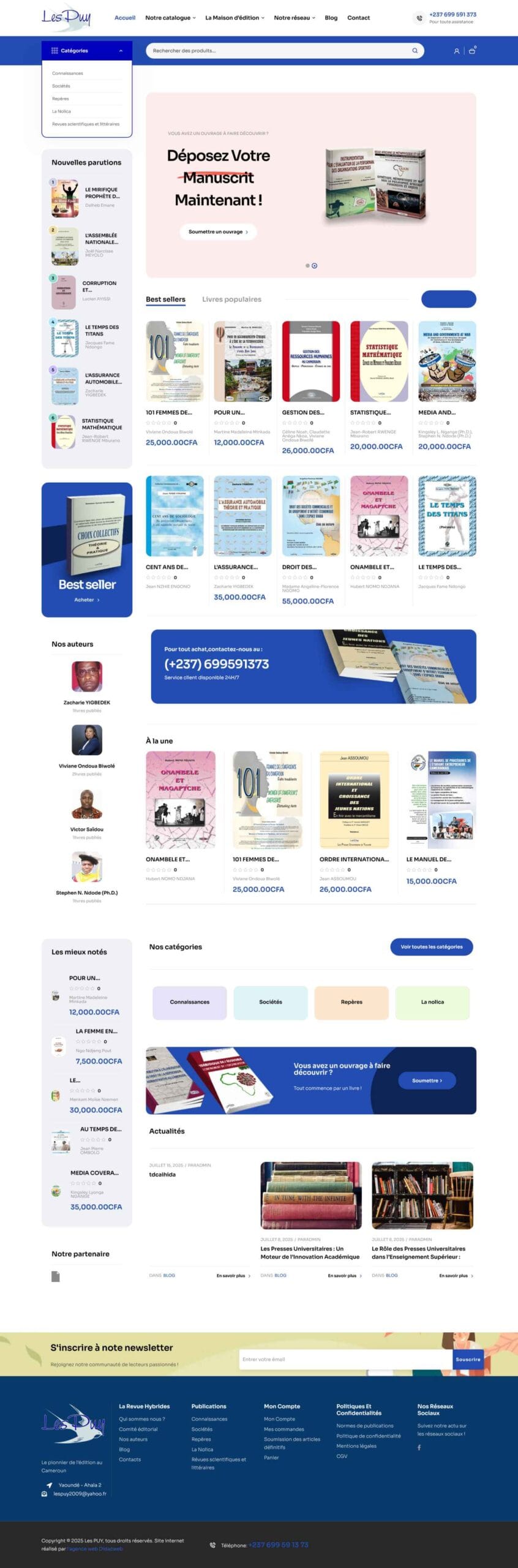 Pour atteindre ces objectifs, les experts de notre agence Web ont développé un site vitrine sur mesure, centré sur l’utilisateur, offrant une navigation intuitive, des informations claires sur les différents ouvrages et collections, ainsi qu’un processus de commande et de soumission de manuscrits simplifié. Ce projet visait non seulement à accroître la visibilité et la diffusion des publications de Les puy, mais aussi à promouvoir la recherche et l’édition universitaire au Cameroun et en Afrique.