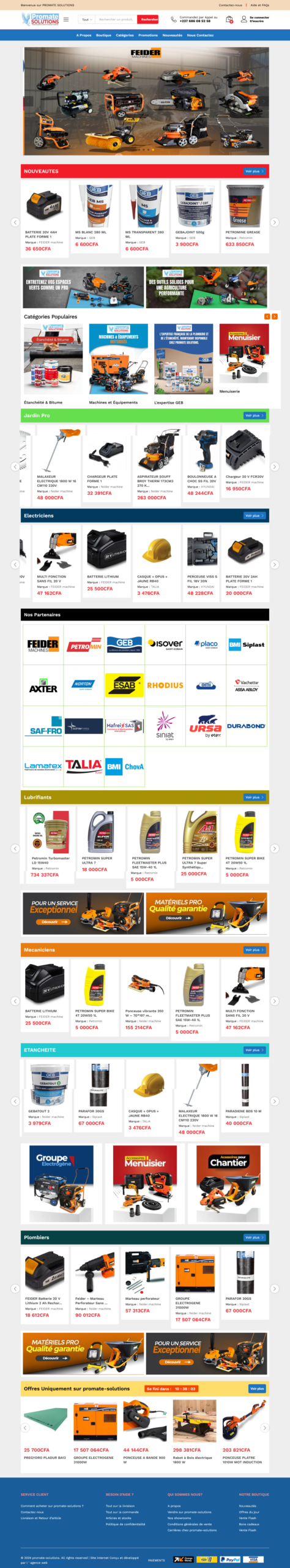 Avant sa collaboration avec Didacweb, Promate Solutions souhaitait moderniser sa présence en ligne et mieux mettre en valeur la diversité de ses produits destinés aussi bien aux particuliers qu’aux professionnels et institutions. L’objectif était de présenter clairement son offre multisectorielle — électronique, électroménager, informatique, mobilier, outillage, accessoires et consommables — tout en renforçant la confiance autour de la qualité de ses articles.