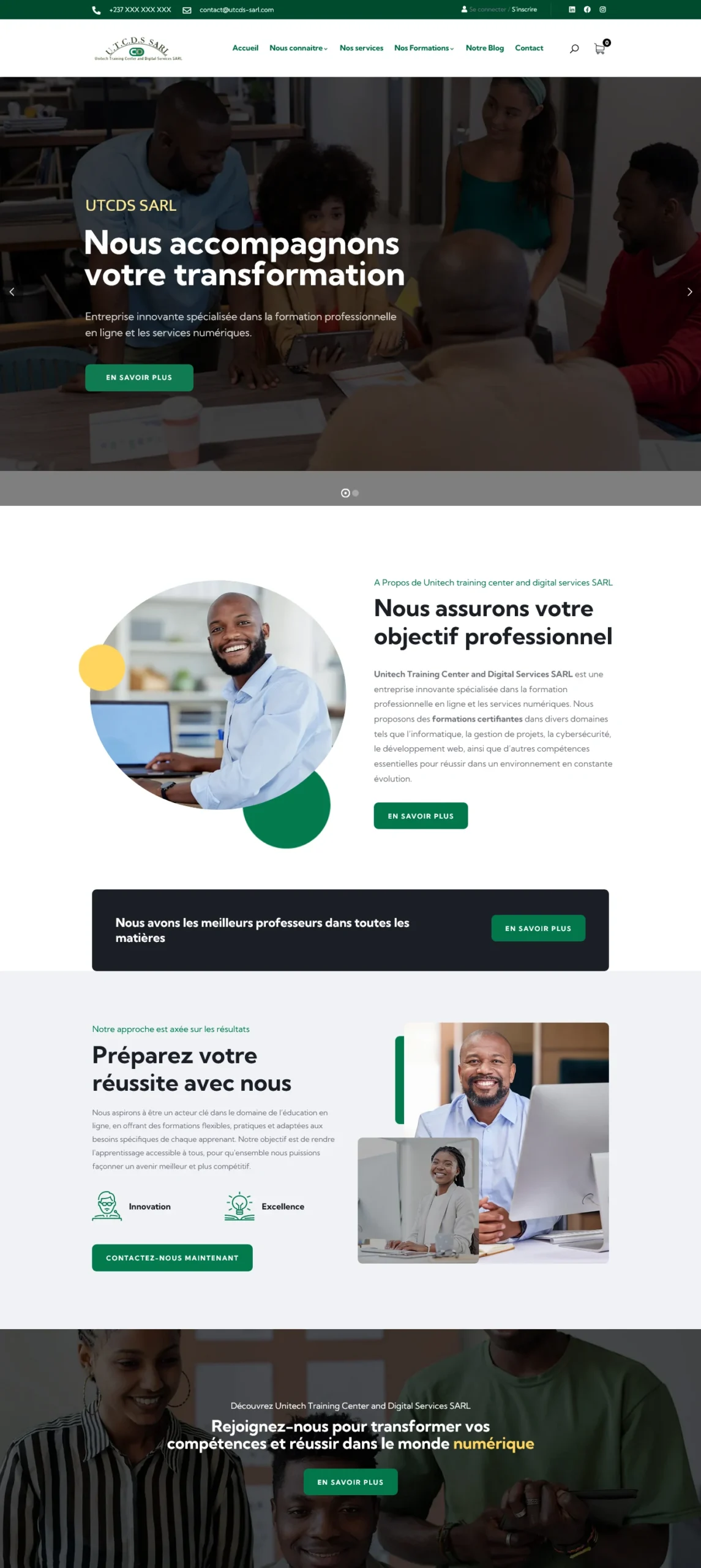 Avant notre collaboration, Unitech Training Center and Digital Services cherchait à renforcer sa présence en ligne et à mieux refléter son image de marque innovante et s’imposer dans le secteur E-Learning . L’objectif pour Didacweb était de créer un site web captivant pour mettre en avant leurs services. Notre mission a été de concevoir un site qui non seulement met en valeur leurs services, mais aussi qui communique efficacement leur engagement envers leur clientèle.